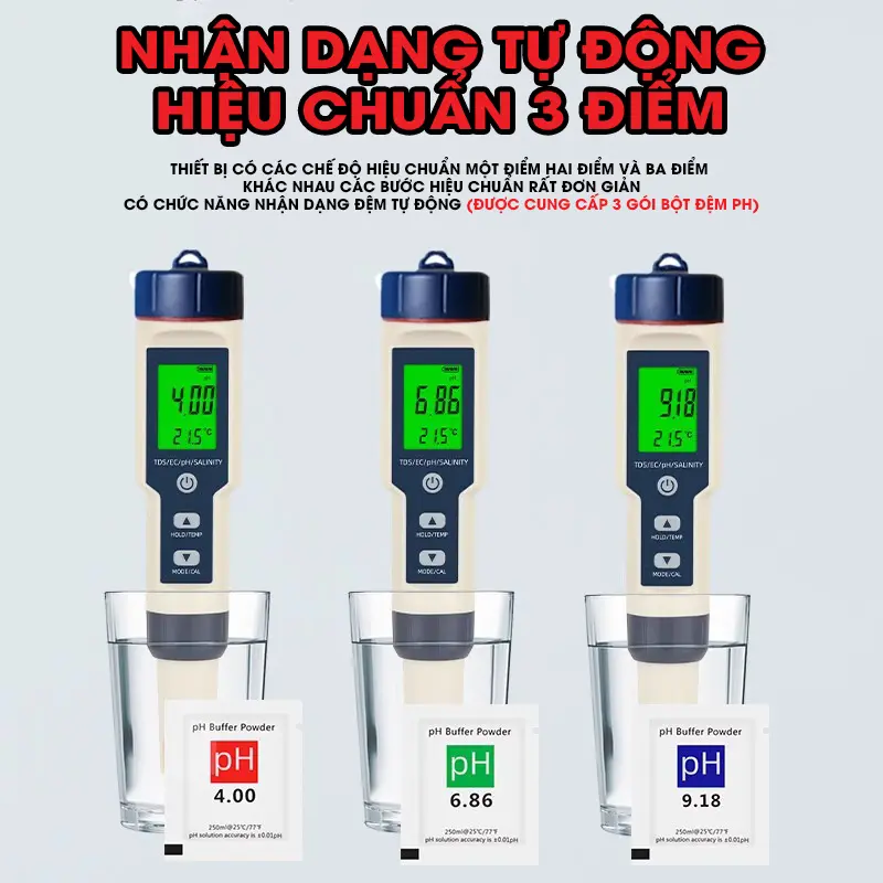 Dùng các dung dịch chuẩn: pH 6.86, pH 4.00, pH 9.18