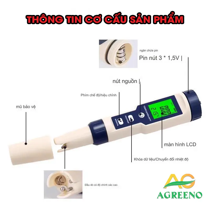 ⚠️ Lưu ý: Sau thời gian dài không sử dụng, nên ngâm đầu điện cực vào nước trước khi đo lại.