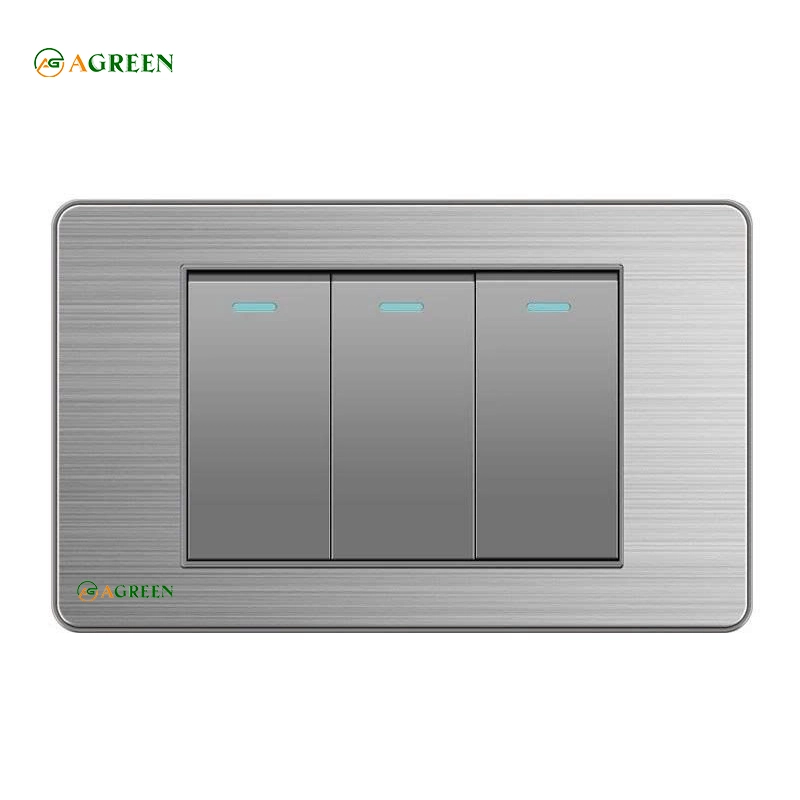 Công Tắc 3 Nút Âm Tường 118i-03 – Mặt Inox Xám AGREEN