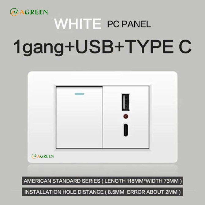 Model: AGREEN – Công tắc kèm USB/Type-C